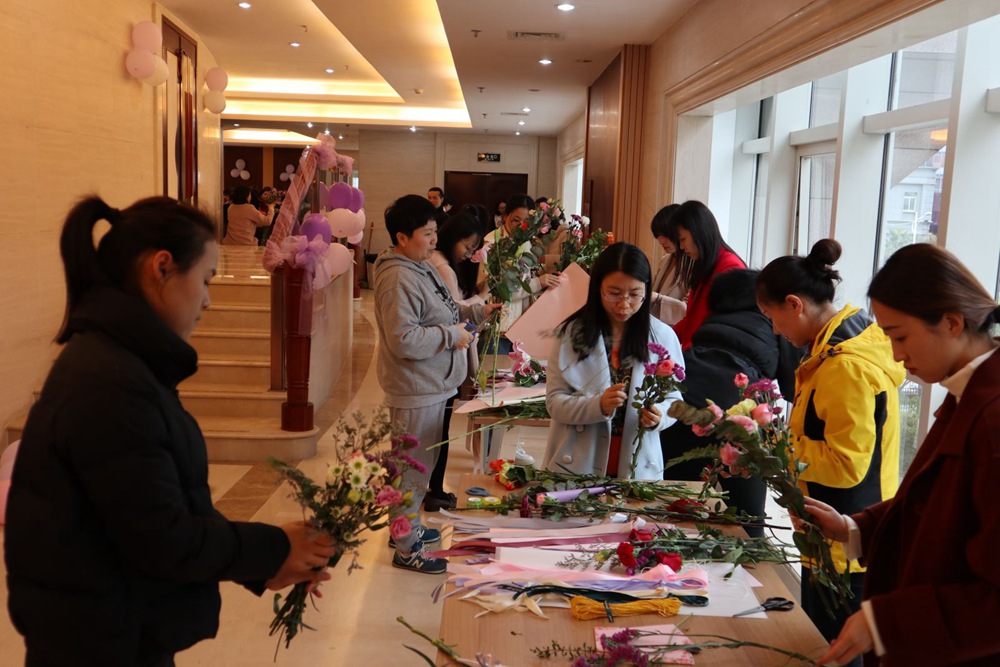 “小姐姐的花”現(xiàn)場熱烈而溫馨,女員工們把對美的理解和對生活的美好向往灌注到插花過程中,化身為插花高手,聯(lián)手奉獻(xiàn)上一場“美麗對決”。各色康乃馨、洋桔梗、玫瑰,在她們修剪、組合中變得更加動人。